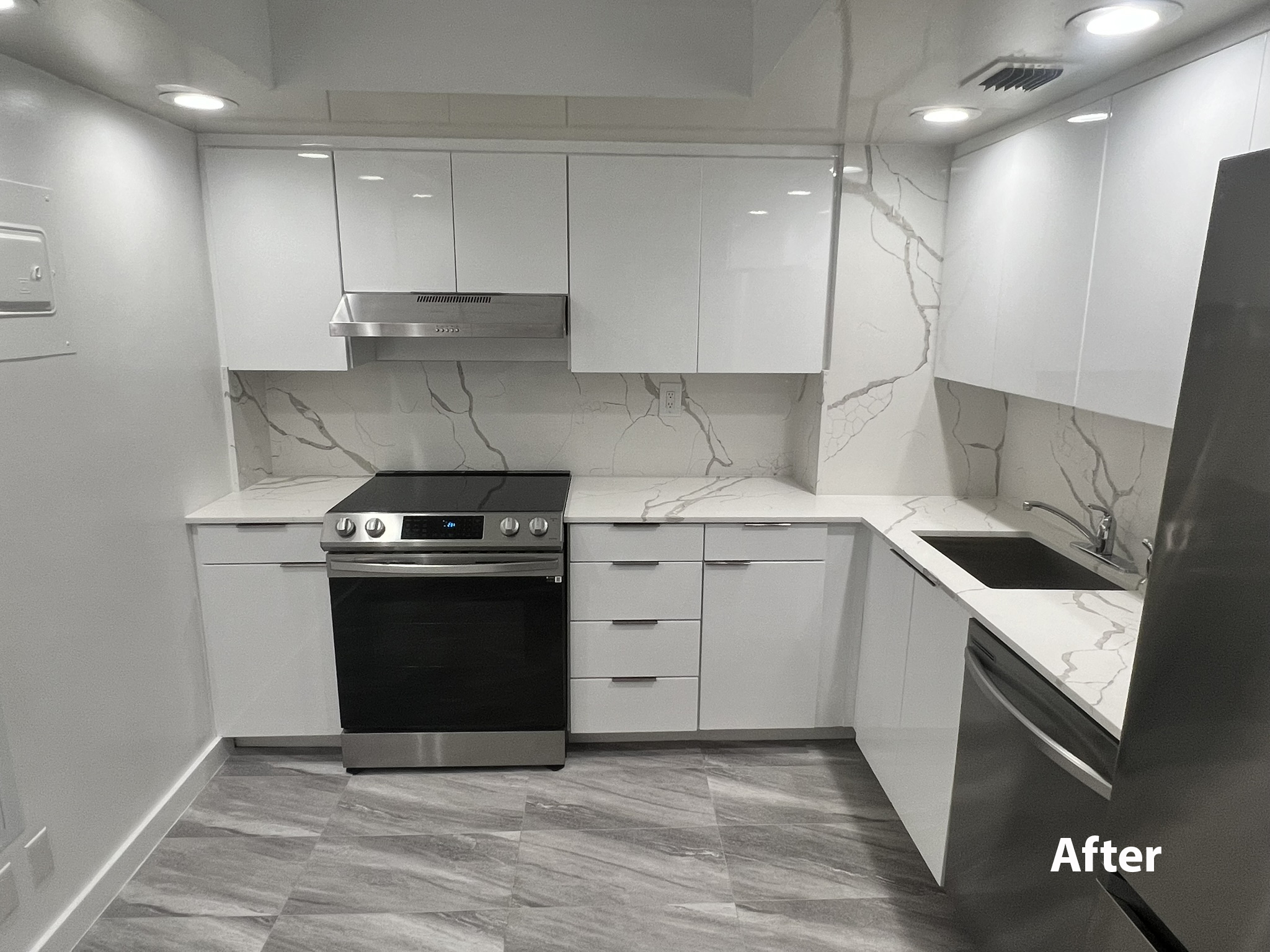 Our client wanted to transform their old kitchen into a modern and bright space. After evaluating their preferences, we recommended opting for light colors, specifically a bright white, to bring freshness and spaciousness to the environment.