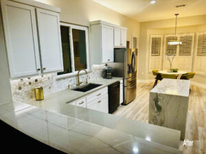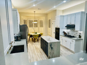 This kitchen went through a stunning kitchen transformation. We turned it from a vintage kitchen to a new contemporary space. The client opted for the freshness of white for most of the cabinets.