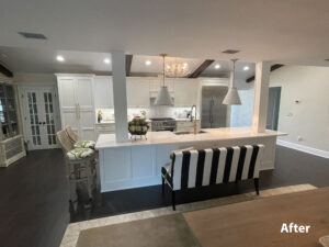 For this kitchen remodeling project, our homeowners were looking to not only update their cabinets, they also wanted to change the look of their island. The existing one was two-tiered, and they wanted to make it one level. The majority of the cabinets we were able to reface while the island was done with new cabinetry.