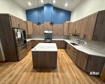 Read moreProject Location: Norton, KS Remodel type: New Cabinets Type of door style: Maui Remodel style: Transitional Color: Gray for uppers […]